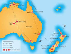 on your unforgettable South Pacific adventure. Cities you will visit while on tour include Auckland, Rotorua, Christchurch, Greymouth, Queenstown, Milford Sound, Franz Josef Glacier, Sydney, Melbourne, Alice Springs, Ayers Rock, Cairns, Darwin, Kakadu National Park and more. |
